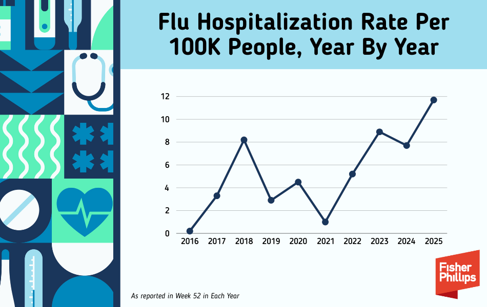 As the new year gets underway, one workplace risk is already clear: the current flu season is shaping up to be one of the more intense in recent years. Public health data shows high and rising flu activity across much of the country, which increases pressure on employers to manage absenteeism, protect employee health, keep operations running, and consider the question of vaccinations (among other things). This Insight outlines what’s different about this flu season and why it should matter to employers, and gives you five practical steps to take now.