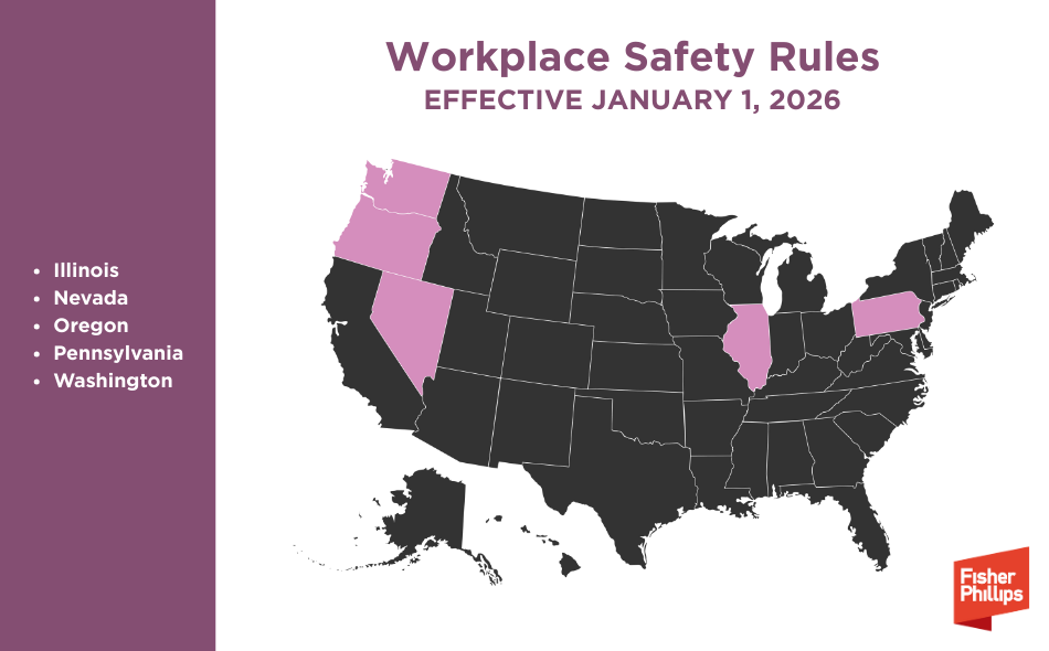 Certain employers in Nevada will soon need to monitor air quality and reduce employees’ exposure to wildfire smoke. Oregon will roll out workplace violence prevention requirements for certain healthcare entities, and Washington will expand safety standards for isolated employees (such as janitors, security guards, and room service attendants).