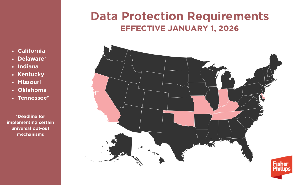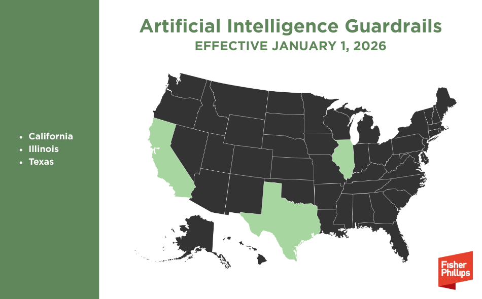 Updates to the Illinois Human Rights Act will prohibit employers from using AI in ways that result in workplace discrimination and require them to provide notice when AI is used for certain employment-related purposes. Texas will also begin regulating AI in the workplace – though with a softer regulatory approach. In addition, California will roll out the nation’s first comprehensive attempt to require safety and transparency reporting for the most powerful AI systems. (State regulators also passed a sweeping set of ADMT regulations this past year, but they aren’t set to take effect until January 1, 2027 – so you have some more time to prepare.)