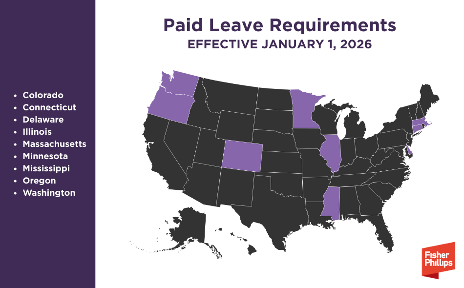 Note: This list should not be relied upon as a comprehensive source for any and all new laws taking effect across the country. This list generally does not cover local laws. All laws listed take effect January 1, 2026, unless otherwise noted. Check with your FP attorney to determine whether the jurisdictions in which you operate have additional workplace law changes set to take effect in 2026. |