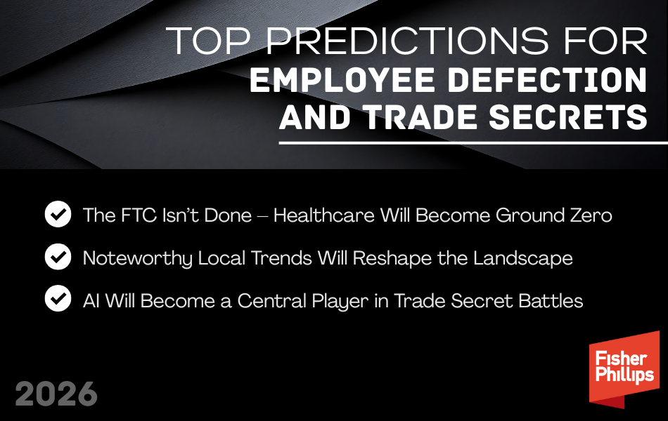 Our Employee Defection and Trade Secrets thought leaders have pulled together their top predictions for the new year so that employers can get a running start to 2026. If you want more, register for our FP Forecast 2026 Webinar here.
